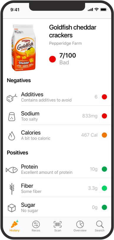 Yuka analyzes food items, providing a detailed data sheet for each product to explain how it was evaluated.
