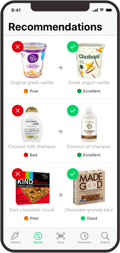 When you scan a product that scores poorly, Yuka offers independent recommendations for similar items that are better for your health.