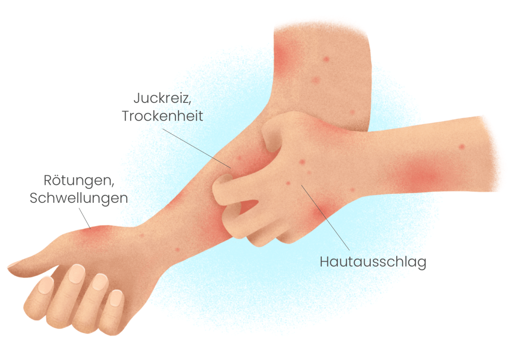 - Besonders vorsichtig sein bei atopischem Ekzem oder chronischen Hautreizungen – selbst wenn diese aus der Kindheit stammen. Diese Hauterkrankungen begünstigen eine Sensibilisierung gegenüber Kontaktallergenen. Die allergische Reaktion kann sich auch noch im Erwachsenenalter entwickeln.