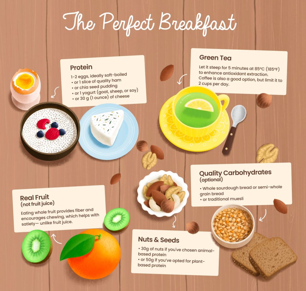 Bread, jam, cereal, fruit juice… Breakfast is often way too high in sugar. However, sugary breakfasts trigger insulin secretion, which should be avoided — especially in the morning.