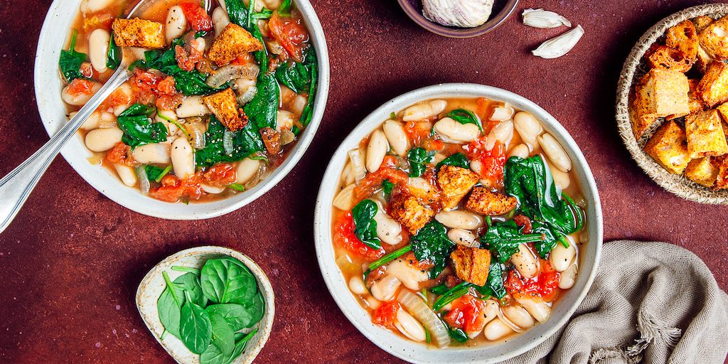 Warm up with this comforting soup made with white beans, spinach, and homemade paprika croutons. It’s full of flavor, ready in no time, and perfect for...