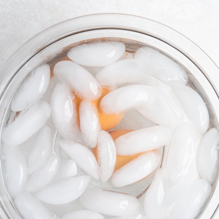 In a separate small pot, bring enough water to cover the eggs to a boil. Add eggs in their shell to boiling water and boil 6½ minutes. In a large bowl, prepare an ice bath. When eggs are done, immediately transfer to ice bath for at least 3 minutes. Remove from ice bath and carefully peel eggs then slice in half.