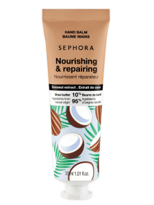 Formulated with shea butter, coconut, and plant-based ingredients in a vegan composition, this hand balm is travel-sized for on-the-go use. |