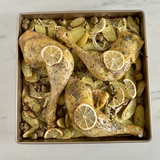 Poulet aux olives, fenouil, pommes de terre grenaille & citron