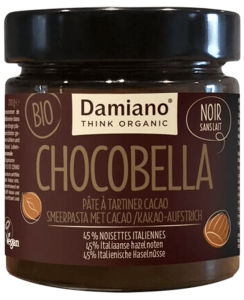 À base de noisettes grillées (45 %), cette pâte à tartiner bio est complétée par du cacao, des amandes et du sucre de canne. Elle présente une bonne teneur en fibres. |