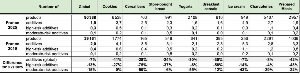 Yuka study on the evolution of the number of additives in France